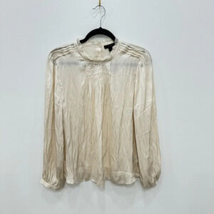 J. Crew Cream Ruffle Lace Blouse Size Large has tags long sleeve pin tuck