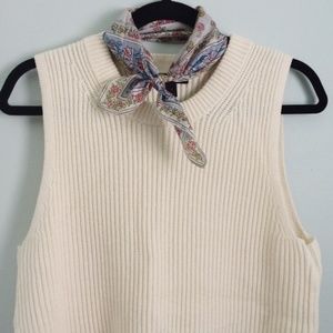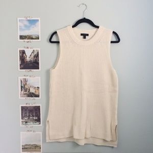 Elegant cream sleeveless sweater. Ribbed texture. Perfect for layering.