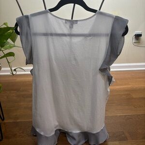 J. Crew Cream Sleeveless Top with Striped Ruffle at Hem Size M 100% cotton
