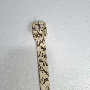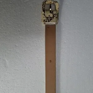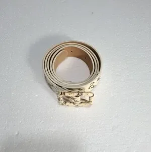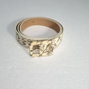 J. Crew women's leather belt with a cream floral print. Features a matching covered buckle. Sleek and fashionable for casual or dressy outfits. Neutral tones pair easily with many looks.