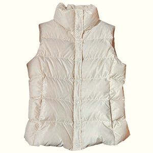 J. Crew Creamy White Quilted Down Zip-Up + Snap Puffer Vest, Size S