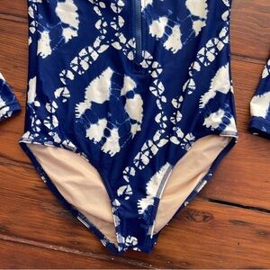 J. Crew CrewCuts batik print long sleeve 1/2 zip long sleeve rash guard swimsuit
