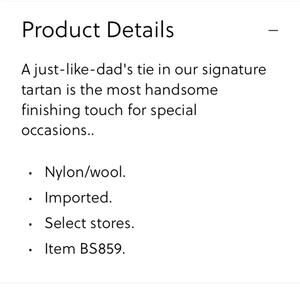 Crewcuts Black Watch Tartan Tie, Silk 42”