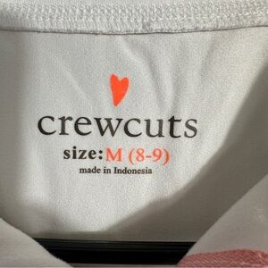 Super cute Crewcuts by J. Crew performance 1/4 zip top for kids, size M (8-9). Lightweight and a great layer for spring. Pink zipper -- please note that the zipper is off track about 2.5" from the bottom, so the zip won't go all the way down. Polyester/elastane blend.