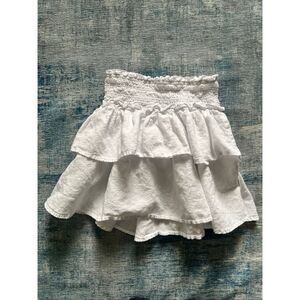 J Crew Crewcuts White Linen Blend Tiered Ruffle Smocked Waist Skirt Medium