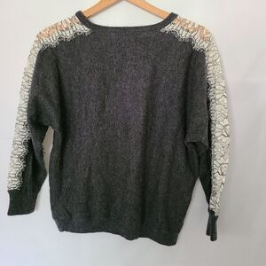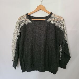 J. Crew Crewneck Edged Lace Wool Blend Sweater sz M
