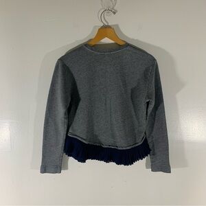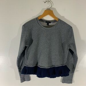 J Crew Crewneck Sweatshirt Gray Navy Blue Ruffled Hem High-Lo Small