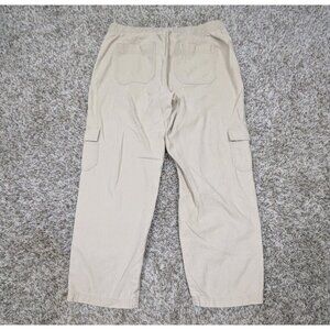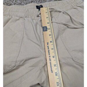 J Crew Crop Cargo Pants Women's Size 6 Beige Linen Cotton Elastic Waist Cropped