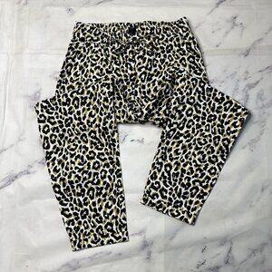 J Crew Cropped Cheetah Pants Womens Size 2 Stretch Linen Blend Loose I86