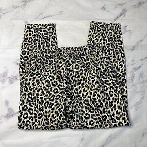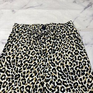 J Crew Cropped Cheetah Pants Womens Size 2 Stretch Linen Blend Flowy.