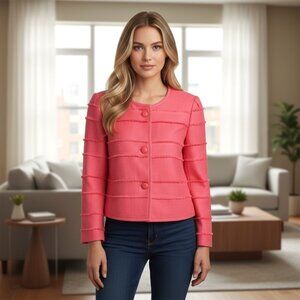 J. Crew Cropped Coral Blazer Lined - Fringe Trim - Size 10