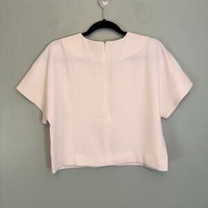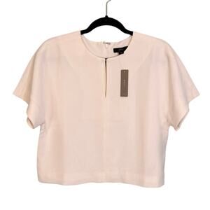 J Crew Cropped Top Womens 8 Ivory Blouse Cap Sleeve in 365 Crepe J8192 NWT