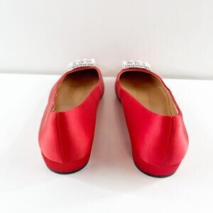 J. Crew Crystal Embellished Pointed Toe Satin Flats Shoes Ruby Red 8