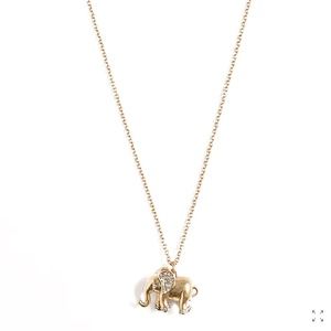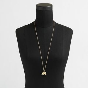 J. Crew Crystal Encrusted Gold Tone Elephant Charm Pendant Necklace - 30" Length