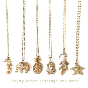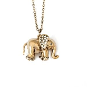 Elephant lovers rejoice! This is a rare J. Crew glass crystal encrusted elephant charm pendant necklace. Pretty pave set crystals and gold tone chain make this necklace sparkle! Round J.Crew charm and tiny crystal charm are attached to clasp. Chain measures approx. Chain measures 30" + 3" extender. Pendant is approx. .75" across. This pretty Elephant charm has some nice weight to it too! In excellent / flawless condition! Such a pretty piece.