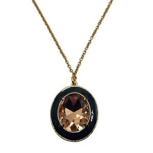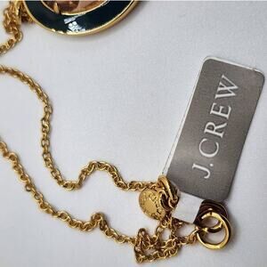J Crew Crystal Pendant Necklace Green Enamel Oval on Gold Chain NWT