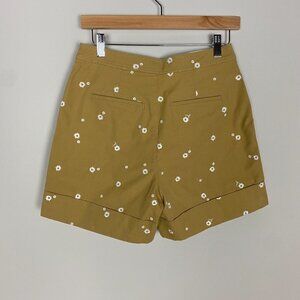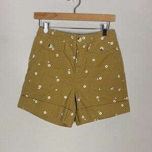 J Crew Cuffed Hem Shorts Embroidered Daisy Tan 10 High Rise Floral