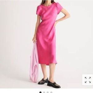 Gorgeous j crew Cupro midi T-shirt dress. Never been worn, with tags attached. this casual style combines the best of both, with a body-grazing fit and slightly flared short sleeves. Plus, it's crafted from our new cupro fabric, which is just as smooth as (and way more durable than) silk, machine washable and made from recycled cotton linter at a zero-waste facility.