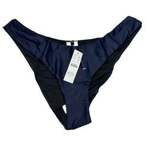 J. Crew Curved Waist Cheeky Bikini Bottom Navy Blue Sz Medium BC125 !New!