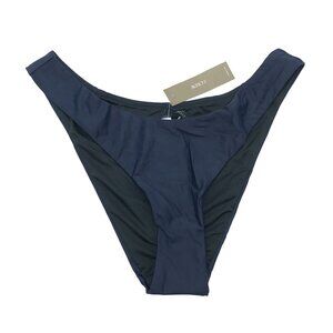 J Crew Curved-Waist Cheeky Bikini Bottom Mid-Rise High-Cut Leg Navy Blue S