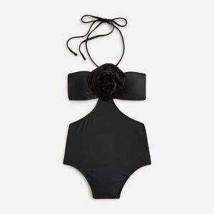 J Crew Cut Out Side Rosette One Piece Swimsuit Sz 14 Black NEW