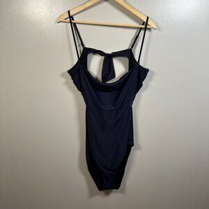 J. Crew Cut Out Tie Back One Piece Swimsuit Size 18 Navy Blue Bathing Suit