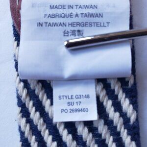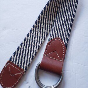 J. Crew D Ring Woven Cotton Striped Leather Preppy Nautical Belt