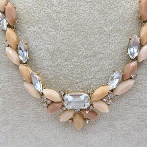 J Crew Dainty Gold Tone Pink Mauve Taupe Resin Clear Crystal Necklace