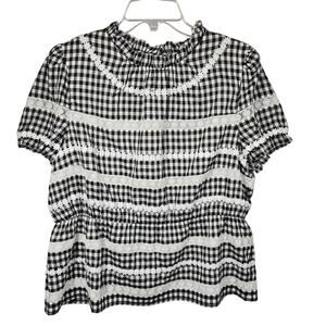 J. Crew Daisy Chain Peplum Black and White Gingham Lined Blouse NWT Size L