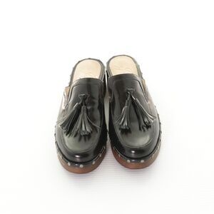 J. Crew Dakota Spazzolato Leather Tassel Black Clogs Womens 9.5M Classic Preppy