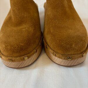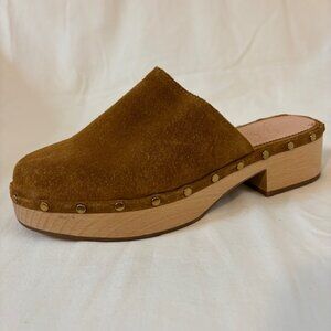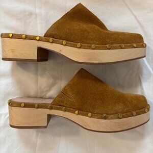 J. Crew Dakota Suede Studded Wooden Platform Clogs in Burnished Pecan Size 6.5
