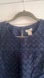 Chic dark blue eyelet blouse. Short sleeves with delicate pattern. Ideal for stylish outings. Measures 18 inches pit to pit; 23 inches in length. Fully lined. A true dark navy blue!