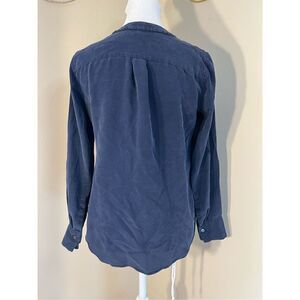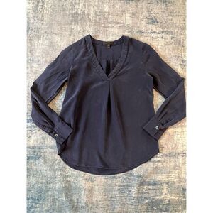 J Crew Dark Blue V Neck Long Sleeve Crepe Blouse Size 0