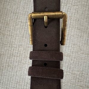 J. Crew Dark Brown Suede Belt with Antique Gold Brass Buckle - XS