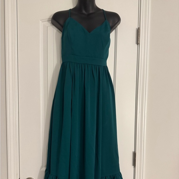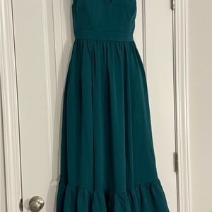 Elegant dark green dress by J. Crew. Features a sleek design with a zipper closure.