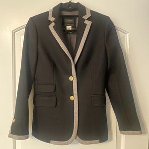 J. Crew Dark Navy Blue with Grey Trim and Gold Buttons Wool Blazer