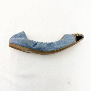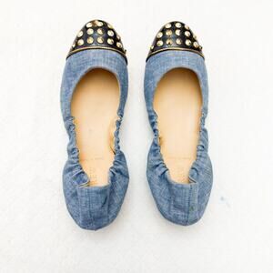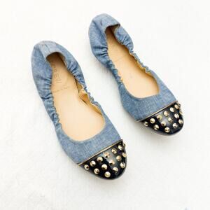 J. Crew Denim Black Toe Box Silver Studded Ballet Flats Round Toe Size 6 Italy