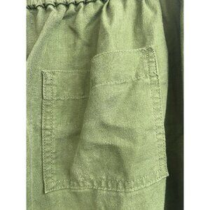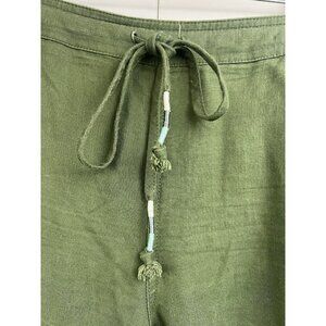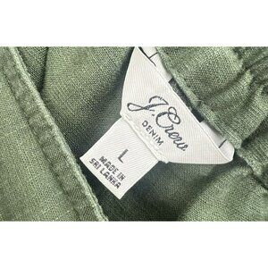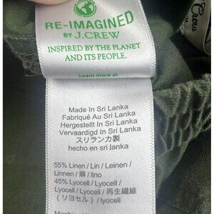 J Crew Denim Capri Pant Size Large Green Linen Blend Pull On Elastic Waist Tie