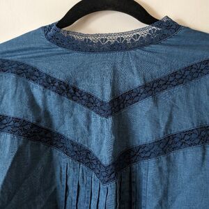 J. Crew Denim Lace Trim Mock Neck Blouse Size Small