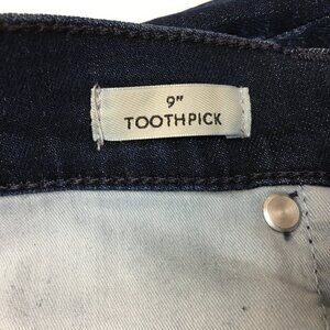 Description: J. Crew Denim women's 9" Toothpick Jeans in good preowned condition; button fly, dark wash
