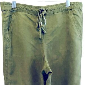 J Crew Denim olive green linen blend elastic waist drawstring crop pants size M.