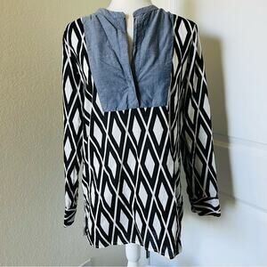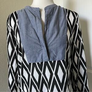 J. Crew Diamond Argyle Print Chambray Trim Tunic