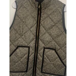 J Crew Diamond Quilted Puffer Vest M Houndstooth Black Cream Preppy Womens