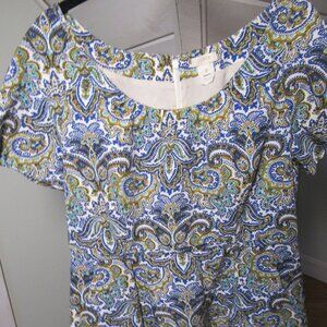 J Crew Dolores Shift Dress in Peacock Paisley Size 12 Cotton Silk Blend Lined