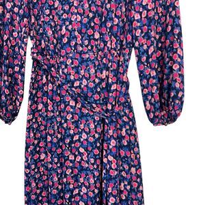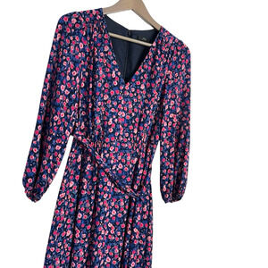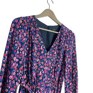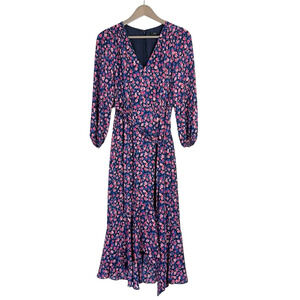 J Crew Dot Floral Midi Dress Ruffled Hem V-Neck Long Sleeve Women's Size 6