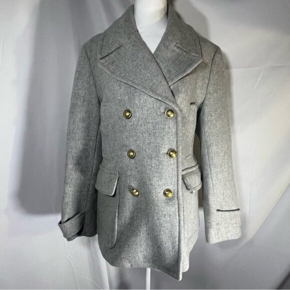 J. Crew Double Breasted Stadium Cloth by Nello Gori Pea Coat Light Gray Size 14