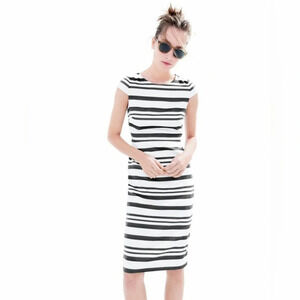 J Crew Double Striped Cap Sleeve Sheath MIDI Pencil Dress 0