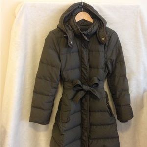 So warm! Very good used condition. Olive green. Removable hood. Bidirectional zipper. Fleece lined pockets.