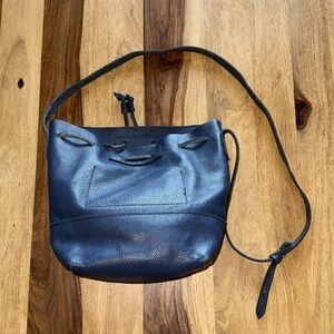 J. Crew Downing Blue Leather Crossbody Bucket Bag