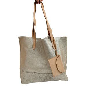 100% leather bag with butter leather straps and silver cracked foil exterior, soft very flexible leather.